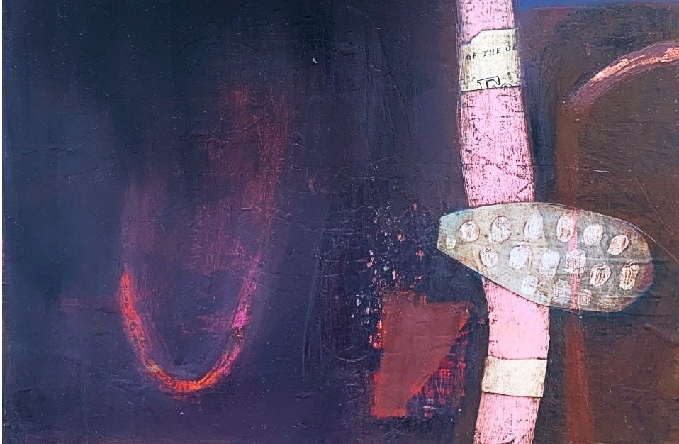 Here’s a reworking of an old painting from 2020. Having dropped the photo into the newsletter, I noticed an interesting conundrum arise around the composition as it relates to scale. On my laptop screen, the blue square in the top right-hand corner feels quite dominant – there’s nothing necessarily wrong with that, but sensibilities as a painter change and I’m finding I want fewer things to look at – creating a calmer space for surface texture, pattern and colour to breathe.